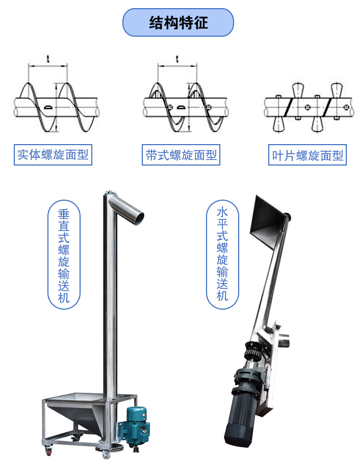 (2)螺旋輸送機(jī)的螺旋葉片有左旋與右旋兩種旋向。