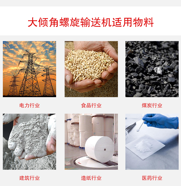 大傾角螺旋輸送機(jī)的適用范圍非常廣泛,例如糧食工業(yè)、建筑材料工業(yè)、化學(xué)工業(yè)、機(jī)械制造業(yè)、交通運(yùn)輸業(yè)等。其適用于各種粉狀、粒狀、小塊狀物料,還有可以輸送粘性,帶狀易纏繞的特殊型號(hào)。粒物料如谷物、豆類、面粉等食品類,干水泥、粘土、沙子等建筑類,鹽類、堿類、化肥等化學(xué)類,還有礦石等其他類別,粘性物料如濕水泥等,易纏繞物料如生活垃圾等。總之大傾角螺旋輸送機(jī)被廣泛應(yīng)用于各行各業(yè),可見其重要性,也印證了它是有價(jià)值的。