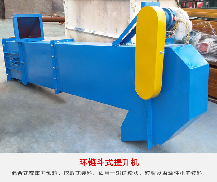 環(huán)鏈斗式提升機采用混合式或重力卸料,挖取式裝料。牽引件用優(yōu)質合金鋼高度圓環(huán)鏈,適用于輸送粉狀、粒狀及小塊狀的無磨琢及磨琢性小的物料,如煤、水泥、碎石、砂子、化肥、糧食等。