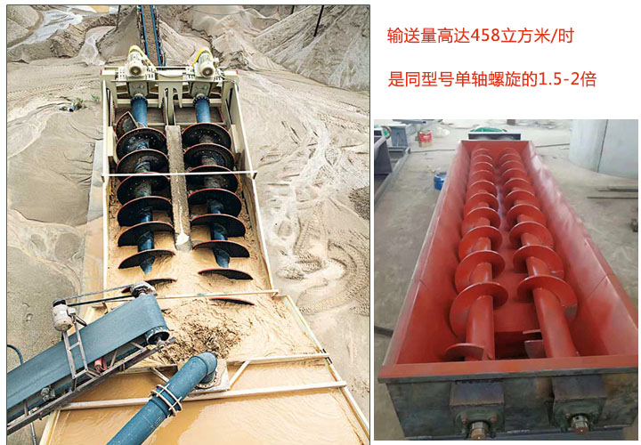 雙螺旋輸送機輸送量高達458立方米/時,由于是兩根螺旋同時旋轉(zhuǎn)可增大其輸送效率,其輸送量是同型號單軸螺旋輸送機的1.5-2倍;此外,還可多點裝料或卸料,可大大加大輸送產(chǎn)量,一小時可達100噸。