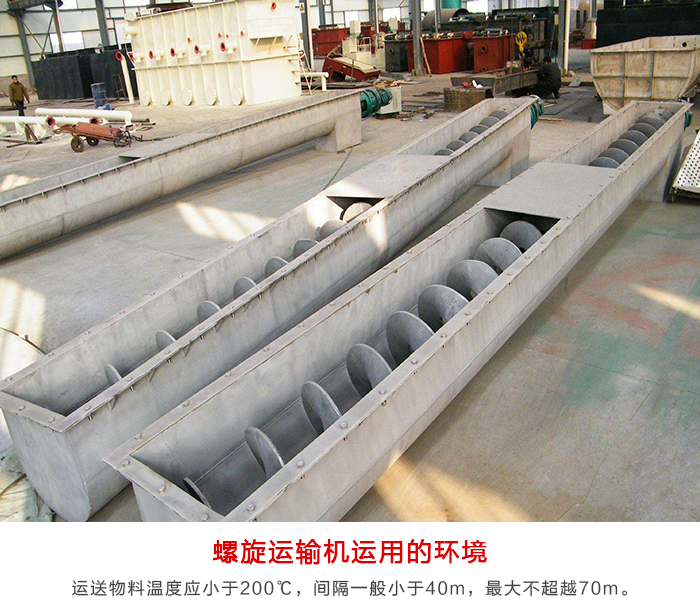 螺旋運輸機運用的環(huán)境溫度通常為-20~50℃;其中,水平型螺旋運輸機,其運送物料溫度應小于200℃;運送機傾角β一般應小于20°;運送間隔一般小于40m,不超越70m。筆直型螺旋運輸機,其運送物料溫度一般不大于80℃,筆直提高高度不超越8m。 鑒于螺旋運輸機的應用規(guī)模及功用特色,用戶在選型時,應根據(jù)運用環(huán)境及運送物料狀況充分考慮、顧全大局、合理選定,以避免不必要的麻煩和丟失。