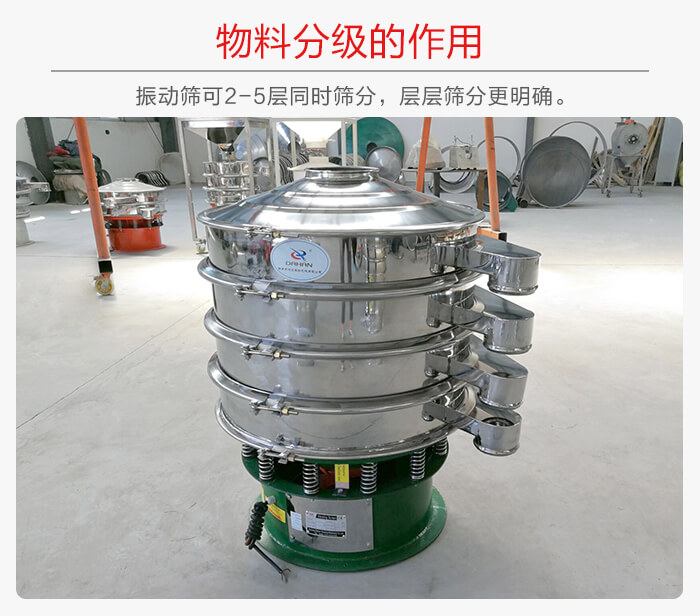 有些生產線中物料的粒徑并不是都是一樣的,粒徑是有很大不同的,利用振動篩設備可以將物料進行分級,按照粒徑大小分別篩分到不同的下一階段生產線中去,最高可以分6級,以實現(xiàn)更加精細化的生產活動。